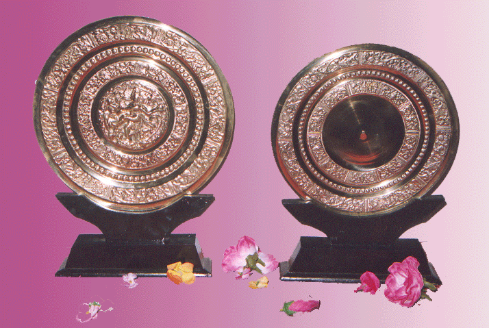 Brass Plates plain or with Natraj come in different sizes of 15cm, 20cm, 25cm, 30cm, 35cm, 40cm. They contain a clip at their back that may be used to hang them over a wall. Optionally a wooden base can be ordered to serve as a rest for the plates. Plates are also available with with paintings of Peacock in multiple colors. |